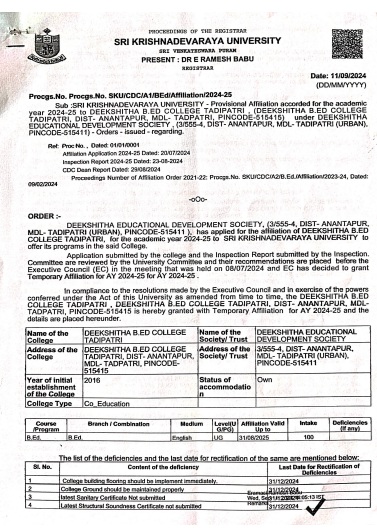DEEKSHITHA B.Ed COLLEGE